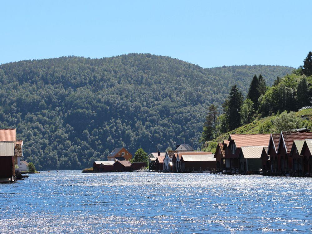 Direkt am Fedafjord befindet sich dieses Bootshaus in ruhiger Lage ca. 1,5 Autostunden westlich der Küstenstadt Kristiansand mit Panoramaaussicht.