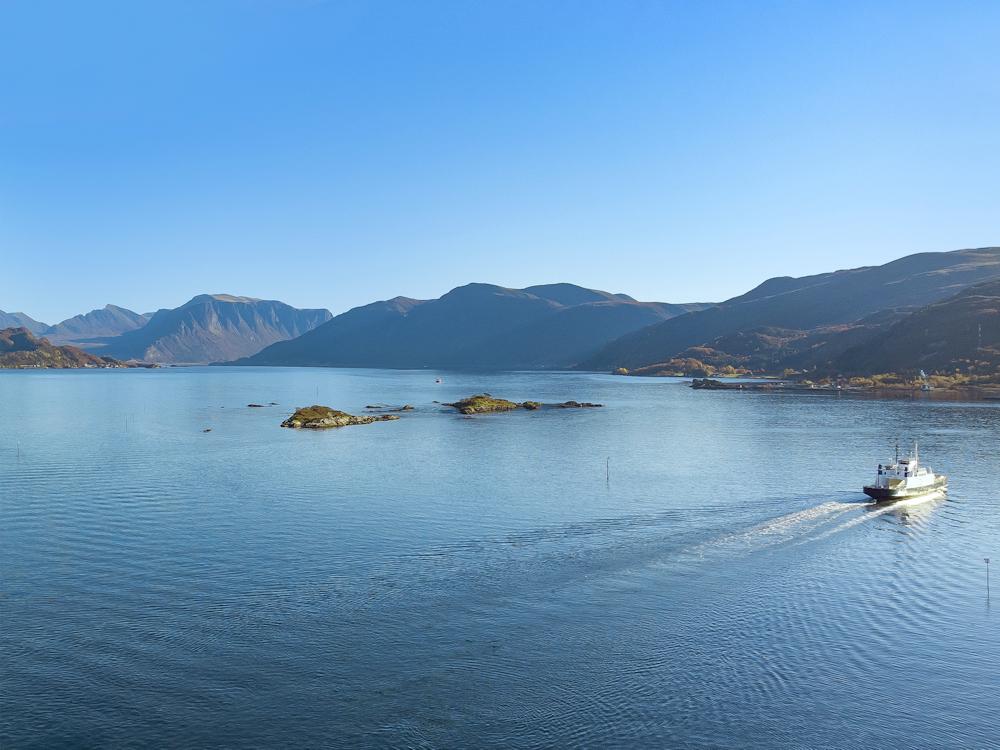 Unmittelbar am Fjord liegt dieses Haus mit Panoramaaussicht auf eine gigantische Fjordlandschaft ca. 1 1/2 Autostunden von Ålesund geschützt und nahe dem offenen Meer.