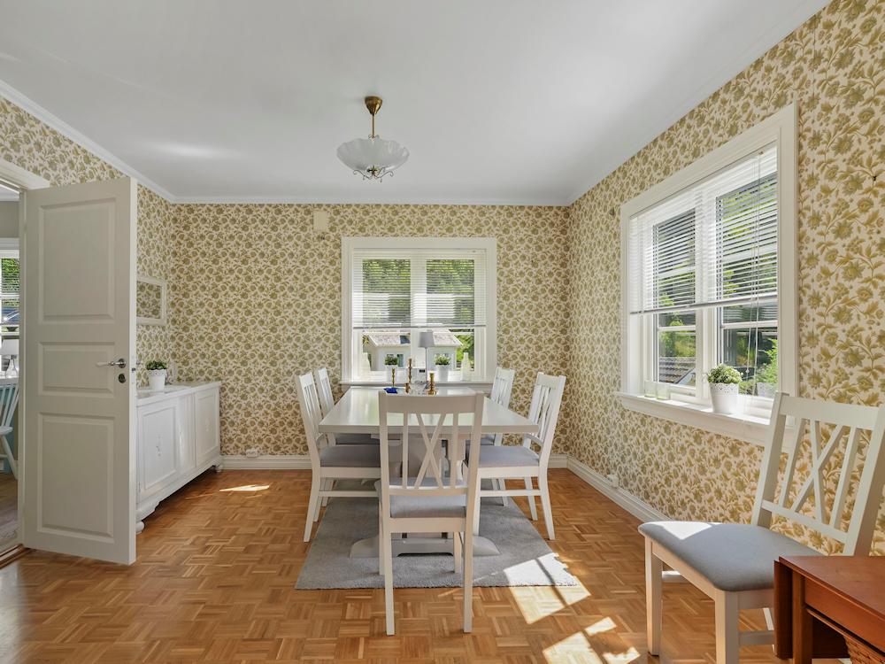 The house has been comfortably arranged. Approx. 95 sqm, electricity, hot/cold water, bath with shower and WC, separate WC , fully equipped kitchen, dishwasher, washing machine, electric heating, terrace, garden furniture, BBQ, the next grocery store is approx. 800 m away, parking at the house, dog allowed, excellent fishing areas, 200 l freezer with filleting kitchen in the lower floor, SAT TV , internet access (Wlan). Landing stage (approx. 300 m), bed linen possible, final cleaning inclusive . Booking code: 123-1. Suggested ferry connection: Hirtshals – Bergen; Kiel – Oslo.
