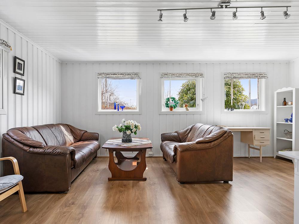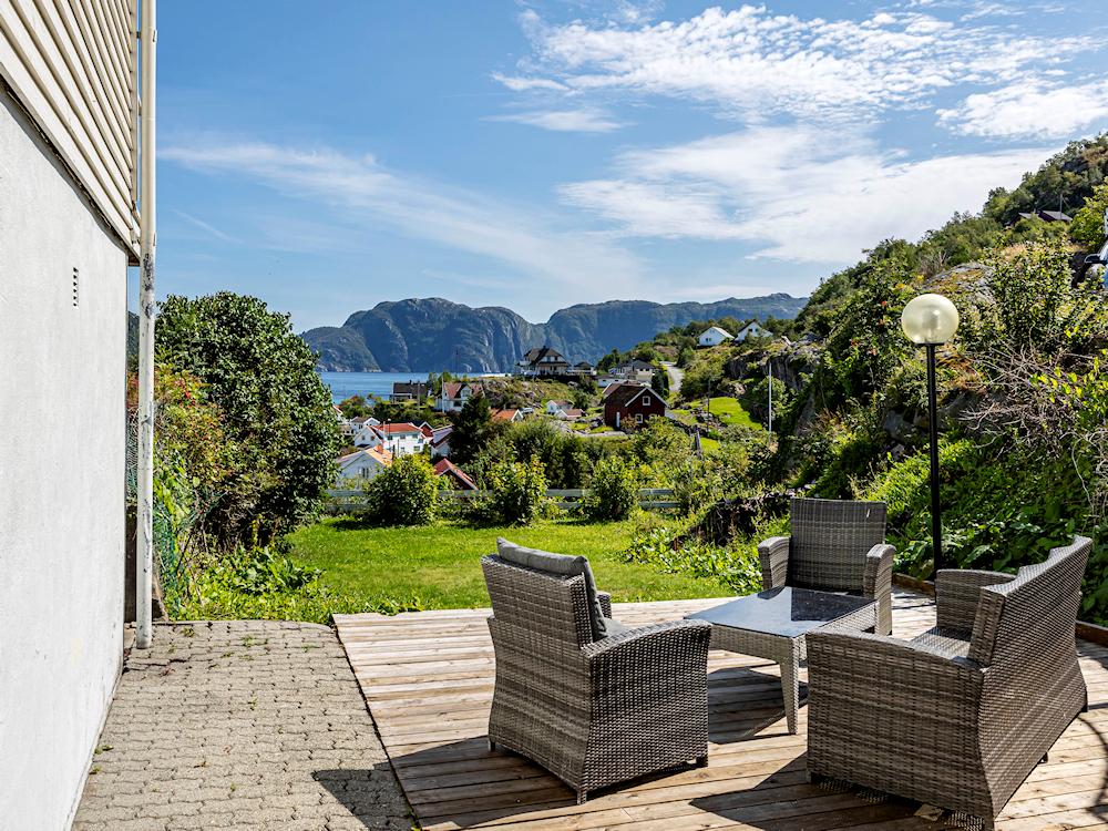 Dit gezellige vakantiehuis ligt midden in de eilandtuin op Andabeløy, ongeveer 1,5 uur rijden ten westen van de kustplaats Kristiansand, vlakbij Flekkefjord.